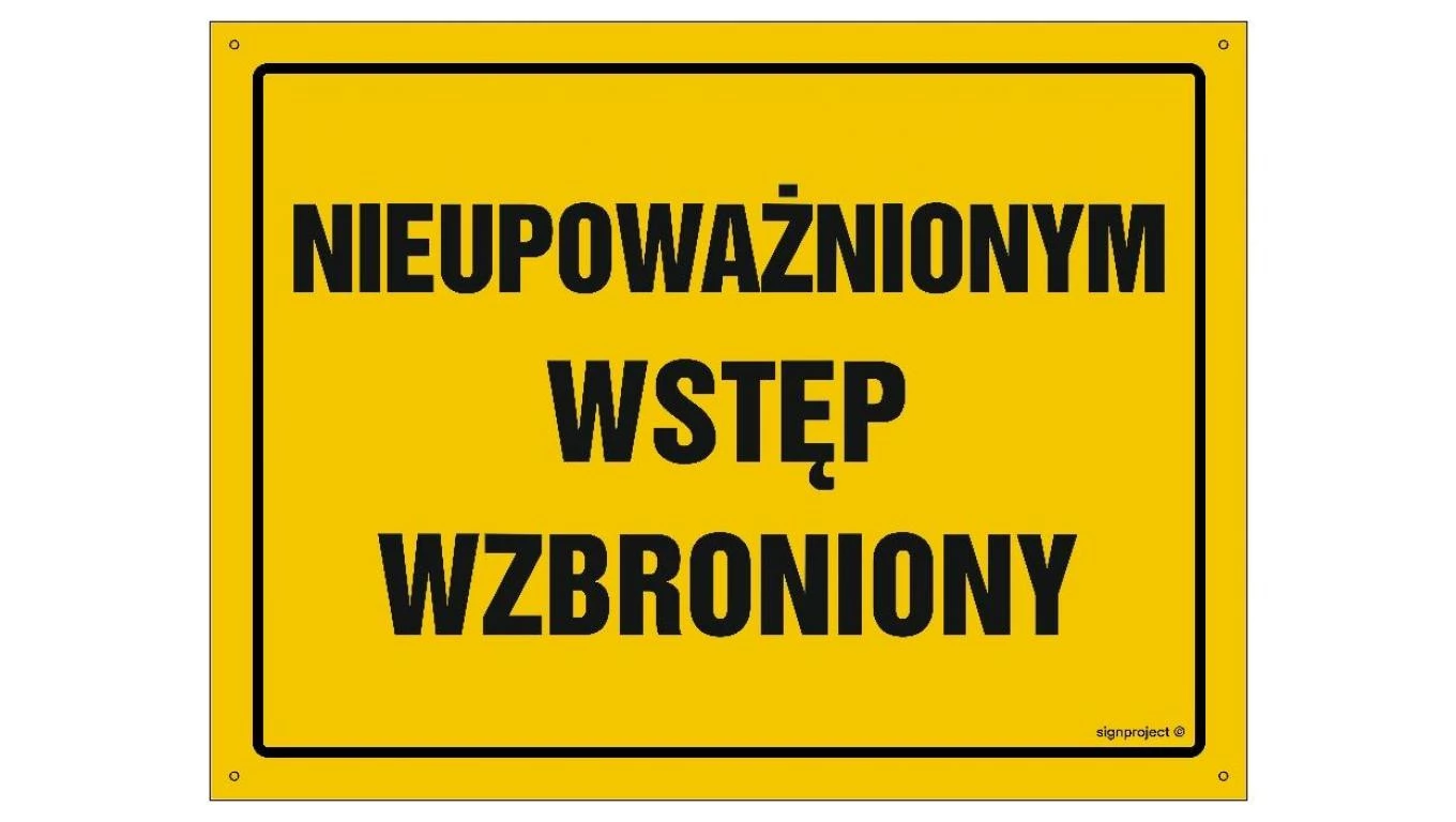 ZNAK - OA195 Nieupoważnionym wstęp wzbroniony 35 x 25 cm BN - Płyta żółta 0,6mm