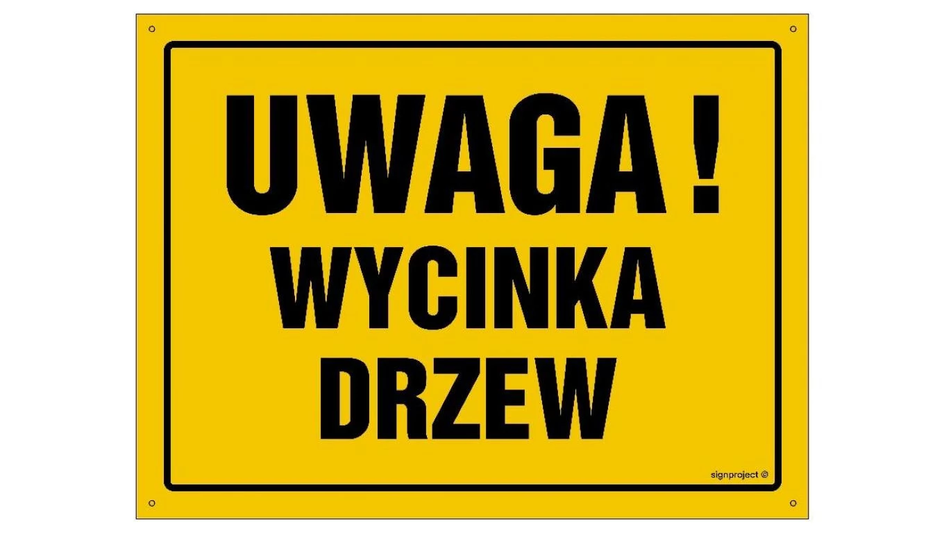 ZNAK - OA202 Uwaga! Wycinka drzew 30 x 21,5 cm FN - Folia samoprzylepna